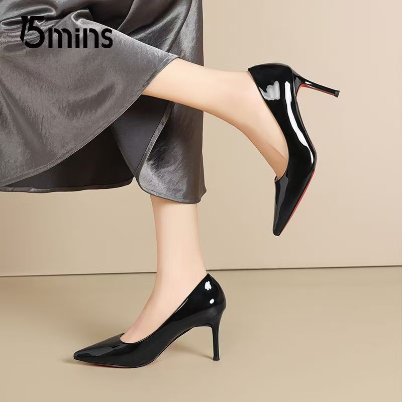 15MINS尖头漆皮高跟女鞋2026春季新款浅口红底御姐风超仙气质单鞋