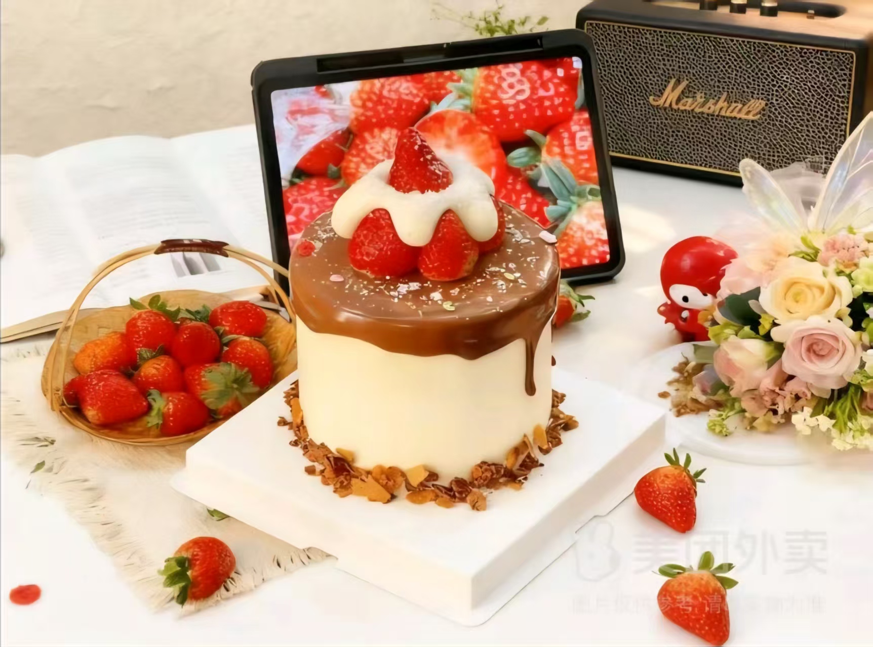 ins风爱心毛茸茸椰蓉生日蛋糕